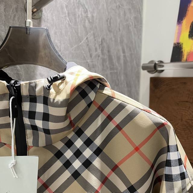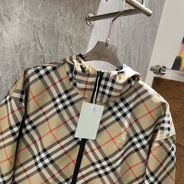 Bbr 2025 New Lightweight Twill Jacket with Drawstring Hood for a Casual Fit. Reversible design: one side features Bur plaid, the other a solid color design adorned with the Ekd equestrian logo appliqu