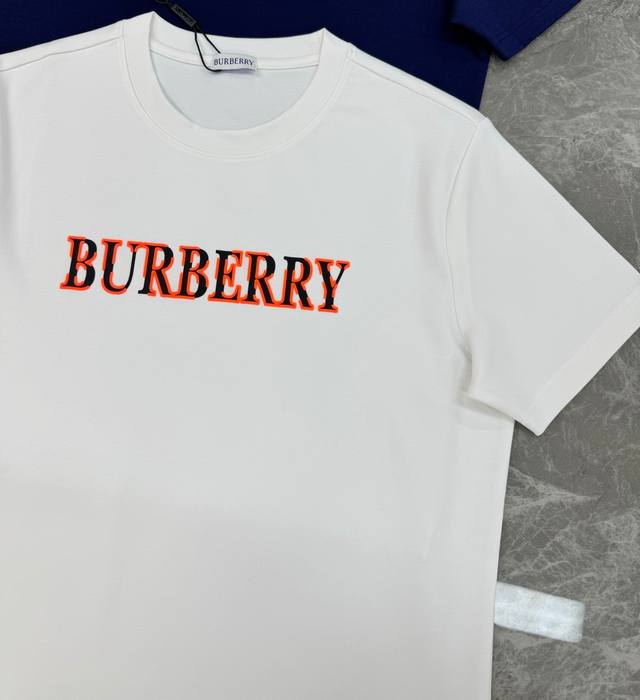 Bbr* Burberry 25S New Letter T-Shirt. A refreshed and upgraded versatile basic style, produced by a trading company! Made from premium organic 250g modal cotton fabric, breathable, comfortable, and durable. Features a high-temperature heat-transfer printed Burberry logo on the chest, showcasing the new micro-logo. A fitted cut to express urban style. Colors: Black, White, Dark Blue . Sizes: S-XL.