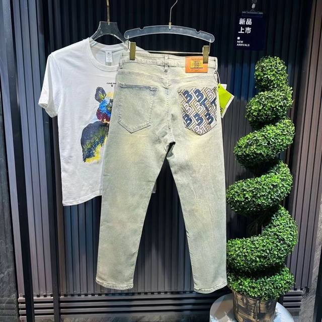 Bbr Burberry printed letter jeans retro style, the combination of time and fashion, leading the trend No.1