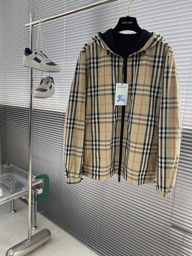 Bbr Checkered Warhorse Reversible Hooded Jacket Ddd The fabric is made of pure black and khaki symmetrical checkered pattern; the black fabric is solid color nylon, soft and comfortable; the khaki fabric uses a chemical fiber process and undergoes post-treatment, making the fabric sturdy Ddd Black side with film-coated knight logo Ddd Unisex Ddd Sizes: M-3XL DDD Ddd