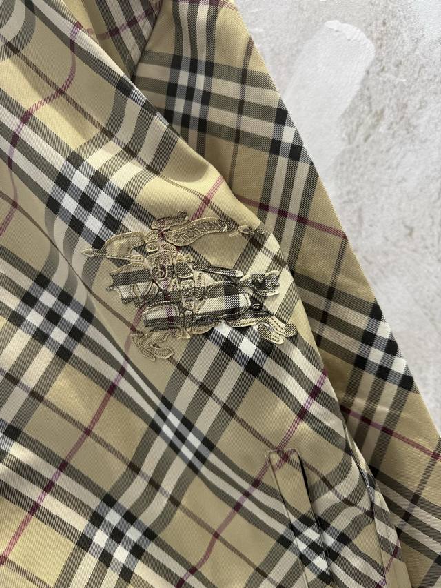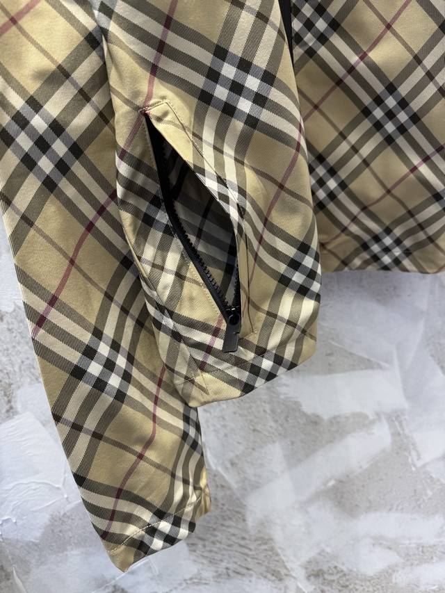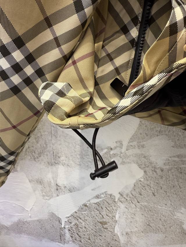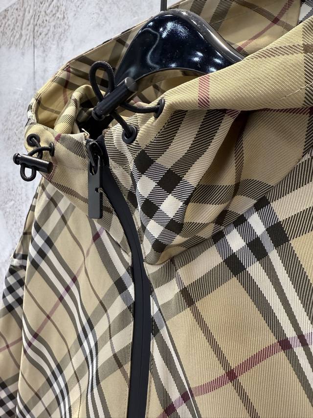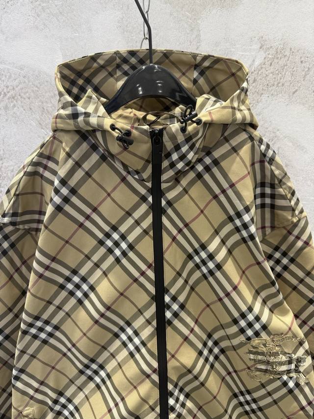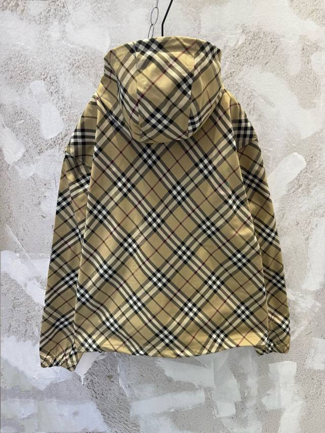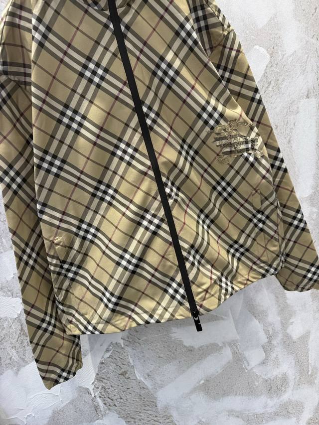 Bbr Classic checkered striped equestrian embroidered hooded windbreaker jacket Ddd Made of checkered twill fabric, this jacket features a waist-length hem adorned with an equestrian knight logo appliqu