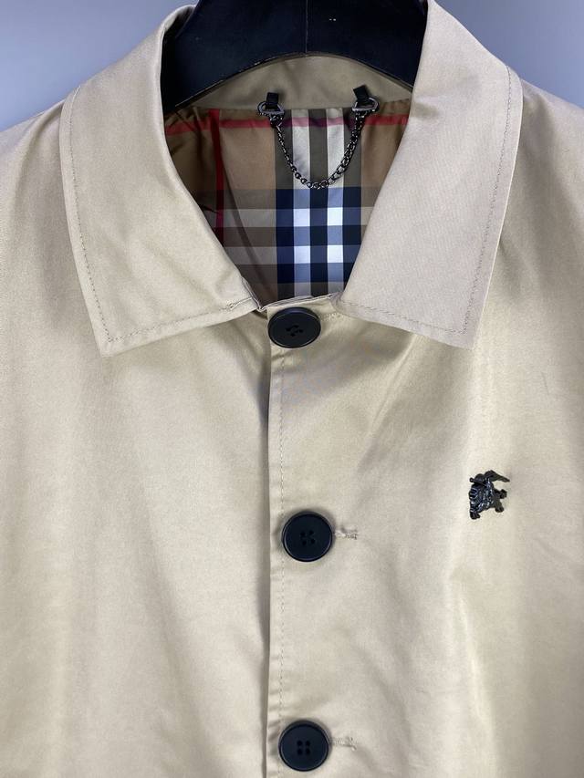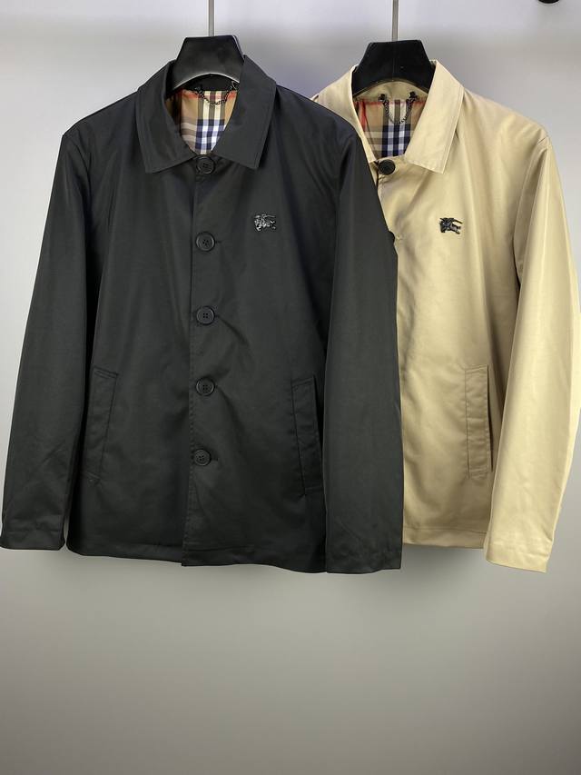 Bbr Foreign Trade Company Order, 2025 Spring Counter Release Newest Style Collared Jacket, made of custom-supplied waterproof and windproof polyester fiber fabric, soft and smooth to the touch, features a metal logo on the chest, button closure, original hardware accessories, and all three labels are complete. A must-have for trendy and high-end individuals, leaked from private channels, suitable for both business and casual occasions. Sizes: M