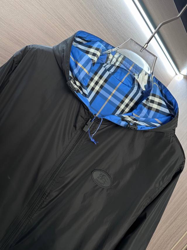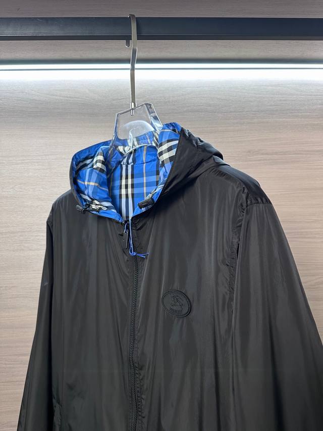 Black and blue checkered A-side Ddd Burberry Fall/Winter New Hooded Reversible Jacket DDD