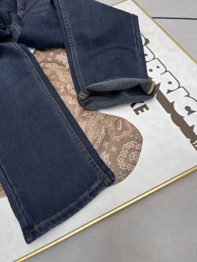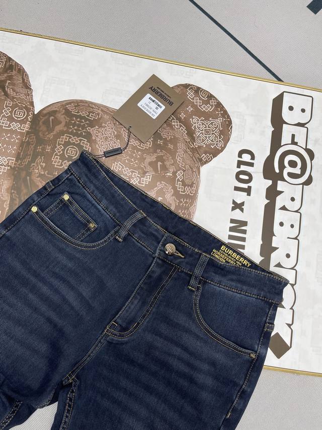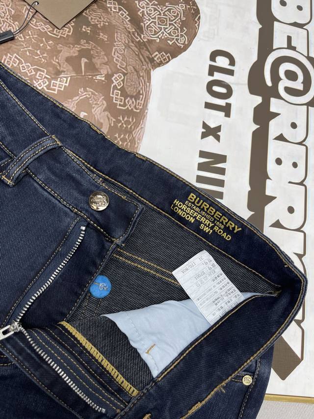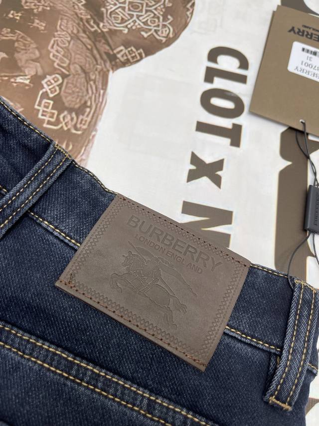 Burbberry's new 2025 Spring/Summer Warhorse Leather Label Tb jeans for business casual luxury. We only make high-quality jeans , focusing on the fabric, workmanship, and details. Original fabric, original wash! Imported original washed stretch fabric. The subtly saturated mid-gray color is particularly challenging to master in the sand-washing test. The complex craftsmanship creates a completely different color even after a few seconds in any wash cycle, making it even more valuable. They are exceptionally durable and odor-resistant. Made with premium denim stretch texture, genuine leather labels, and custom Tb embroidery, these jeans create a unique and original look! Original hardware and accessories, a superb fit, comfortable and breathable, and of the highest quality, counter-quality, and a stylish look. All three labels are included! Color: Blue. Sizes: 30-40. 37.39.