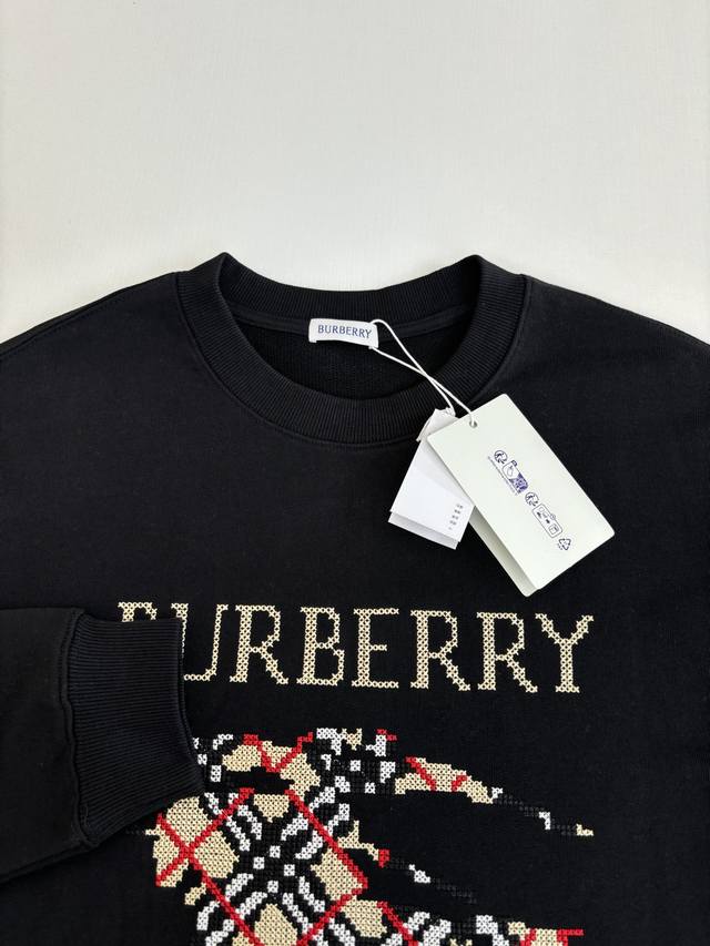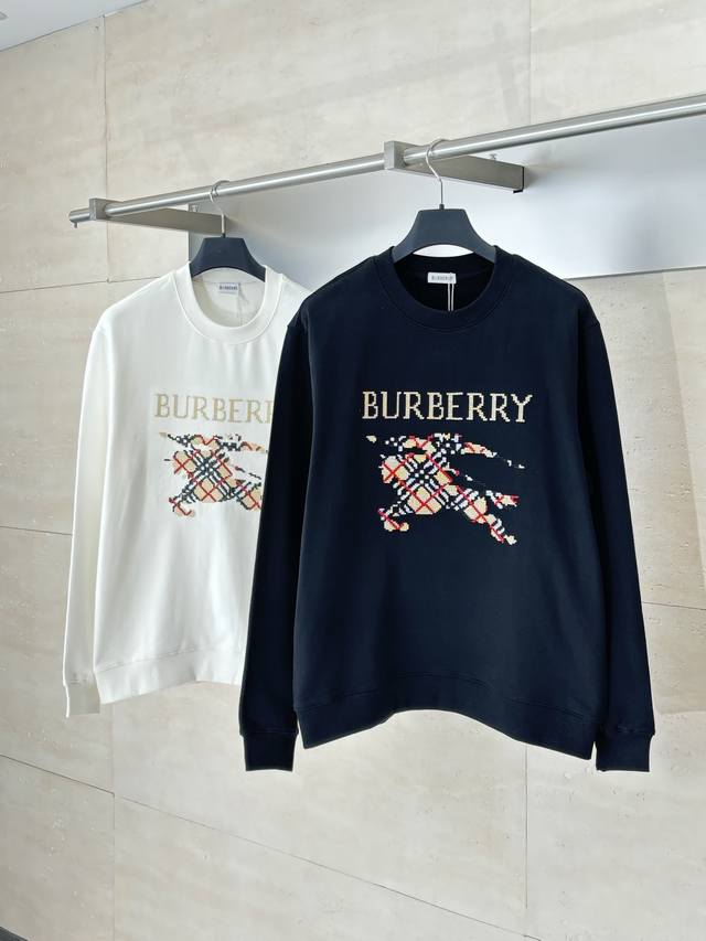 Burberr* Burberry 25Ss New Cross-Stitch Equestrian Logo Cotton Crew Neck Sweatshirt. Made from lightweight fleece cotton fabric. Features a casual fit and is decorated with a cross-stitched brand logo and the Burberry check equestrian logo. Sizes: S, M, XL.