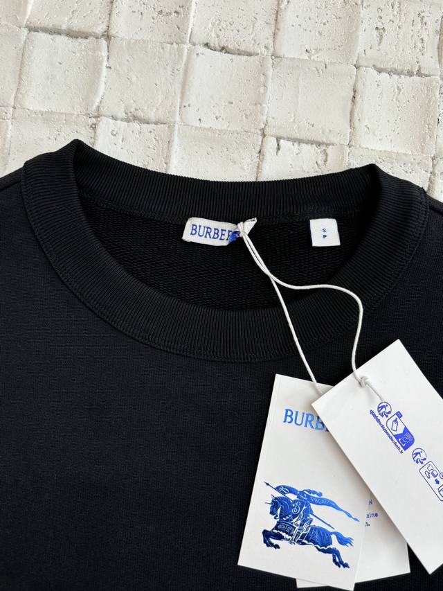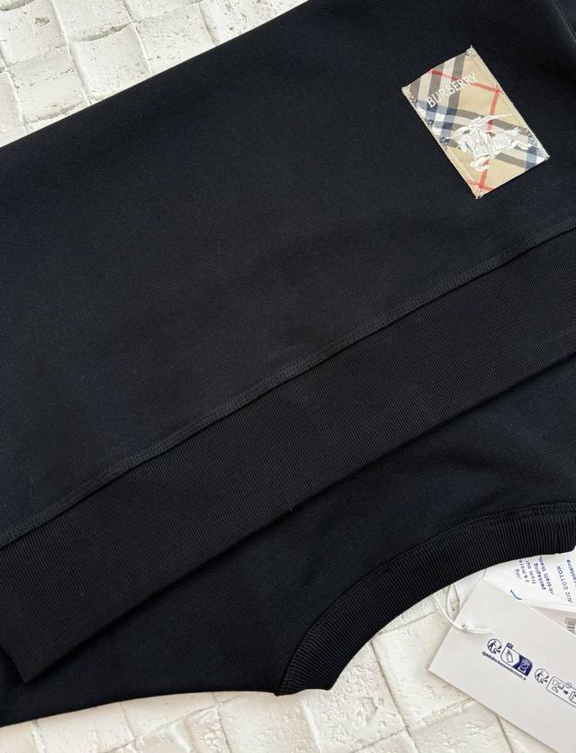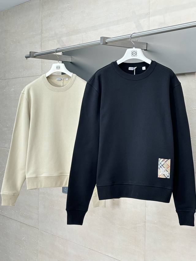 Burberr* Burberry Bbr Check Label Cotton Pullover Crew Neck Sweatshirt