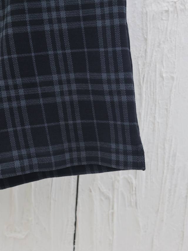 Made of triple golden ratio cotton blend fabric, cotton fiber is naturally skin-friendly, soft, and highly absorbent. Its structural characteristics retain the breathability of the fabric and reduce the feeling of stuffiness. The addition of a small amount of elastic fiber and polyester fiber significantly improves the stretchability and resilience of the fabric, while enhancing wrinkle resistance and shape retention, and reducing shrinkage. The checkered lines form a looming relief effect through the changes in the depth of yarn color and weaving method. It feels smooth but has rich visual layers. The jacquard process weaves the pattern into the bone, and it is not easy to fade and wear after repeated washing.