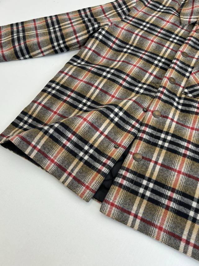 / Burberr* Burberry Fw25 Br wool blend plaid lapel snap button cotton jacket Size: