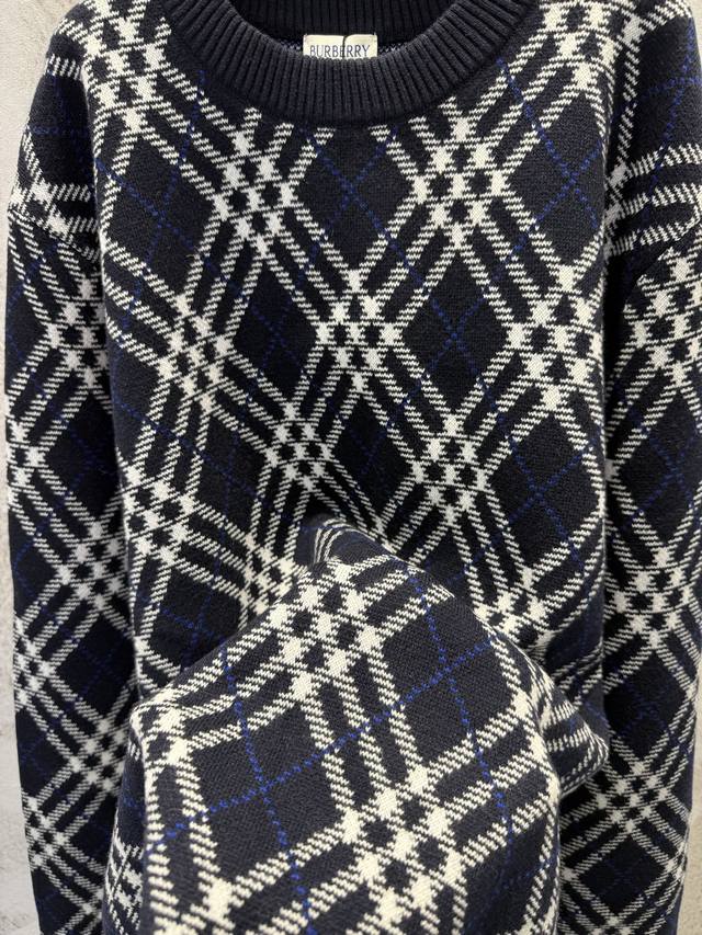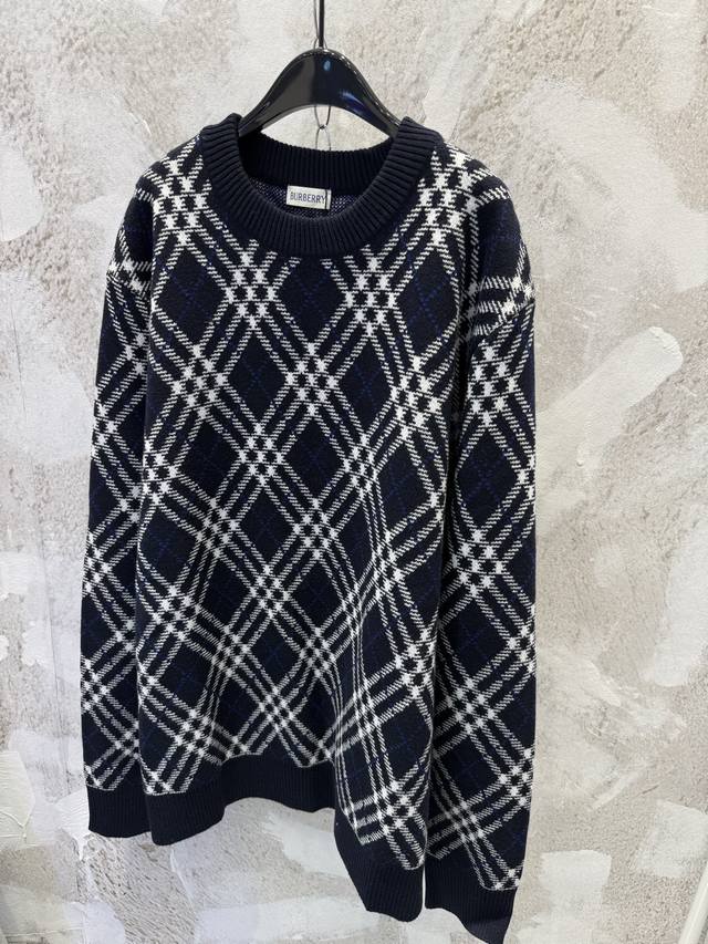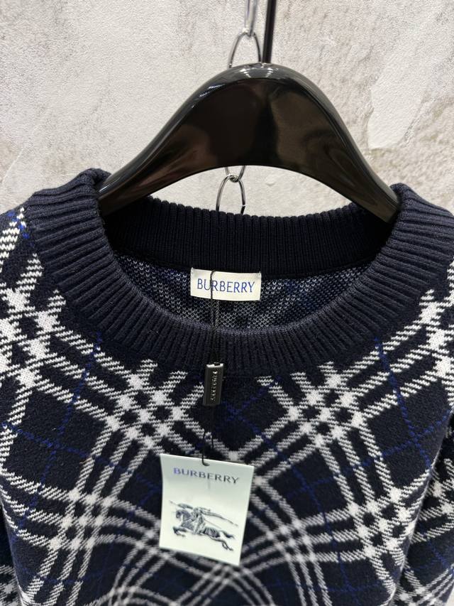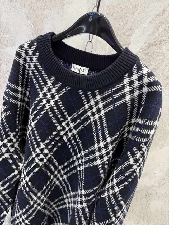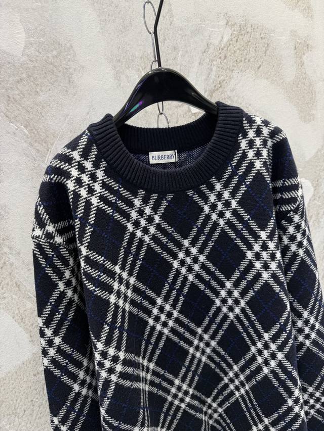 Burberr*Burberry New High-Quality Twill Check Wool Blend Pullover Crew Neck DDD Made from a select wool and cashmere blend fabric, featuring a jacquard check pattern for a sophisticated design. The weight and excellent drape create a relaxed and effortless look, perfectly embodying the latest Burberry style. Experience the newest Burberry chic! Sizes: S, M, L, XL DDD