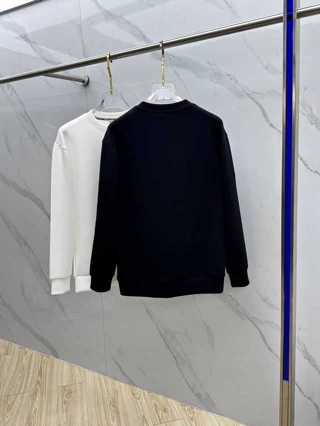 Burberry 2025 Autumn/Winter New Arrival Embroidered Crew Neck Pullover Sweatshirt. Exuding superior fashion charm and a unique artistic flair. Made with custom-supplied high-weight cotton fabric, offering a perfect balance of softness and firmness, its breathability is ideal for spring and autumn. Exquisite one-piece stitching creates a refined look. Anti-static and dust-resistant, it's easy to care for daily. Excellent wrinkle resistance is also a plus. The tailored silhouette creates a trendy and fashionable style. The fabric combined with superior tailoring showcases stunning elegance and sophistication. The cuffs and hem feature a precision knitted ribbed design for a snug and comfortable fit without any constriction. A noble and elegant casual style that's effortlessly chic. Sizes: Smlxl