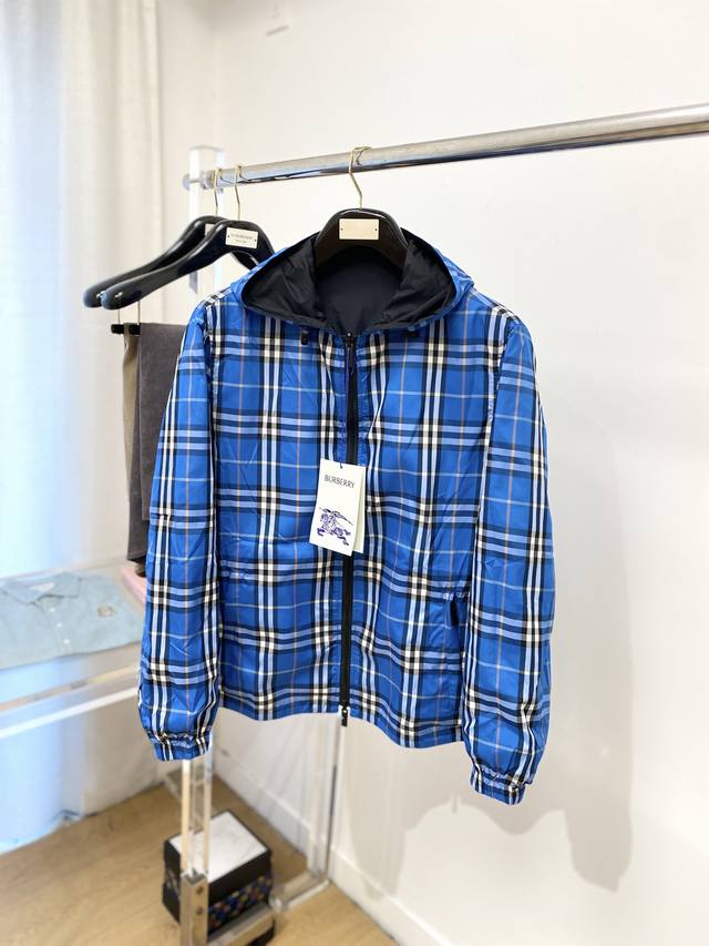 Burberry, 2025 New Reversible Jacket, stylish and chic, simple and versatile, embroidered logo on the chest, made with custom original fabric, not only crisp and maintaining a trendy silhouette, but also comfortable to wear, with a finer weave, sizes M-3XL DDD
