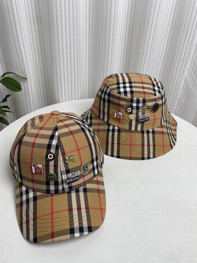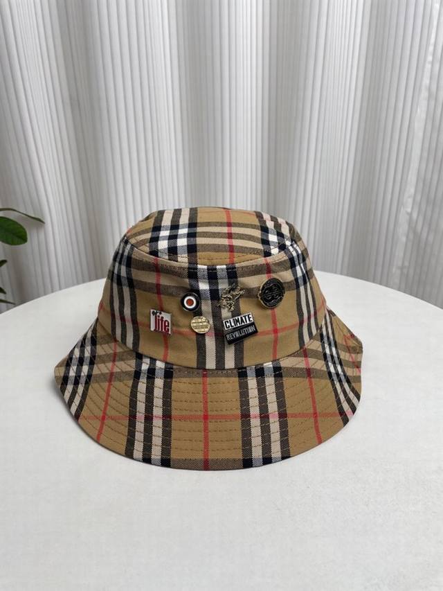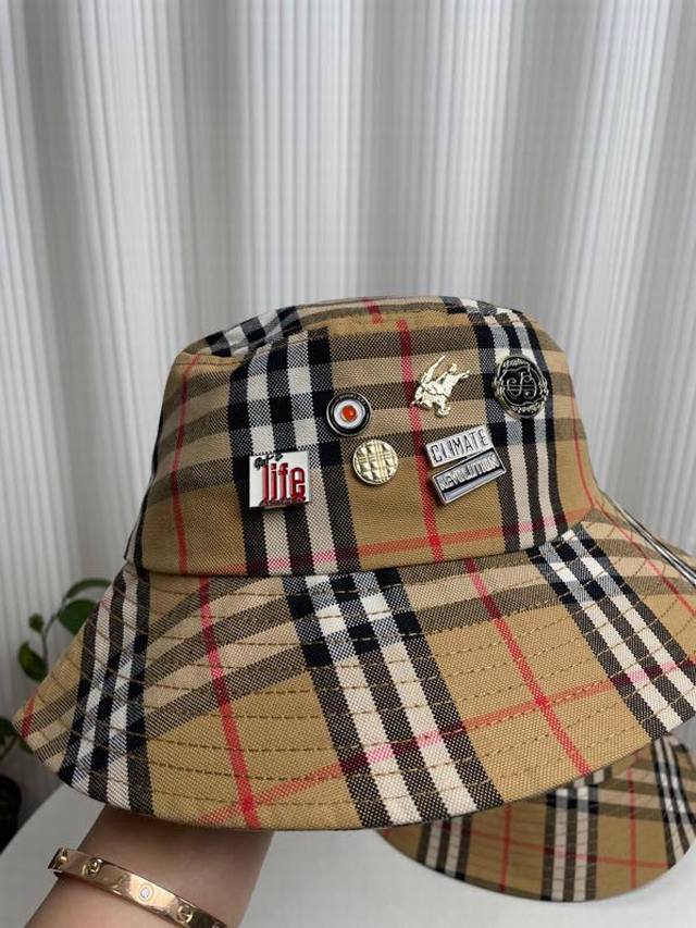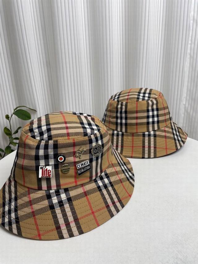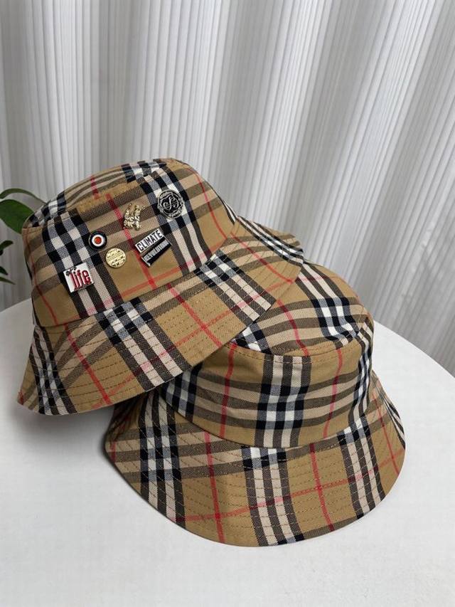 Burberry 2025 official website is on sale simultaneously, classic plaid badge bucket hat original quality unisex sun hat cotton and linen texture original counter quality light and breathable version perfect details full of good goods are not much, hurry up to buy a single color into the same style baseball cap is on sale