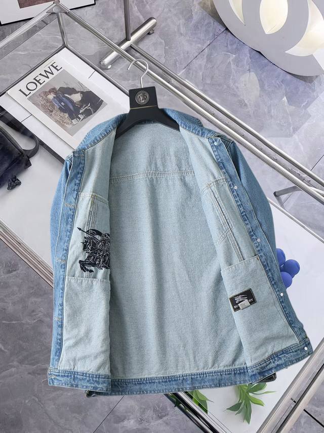 Burberry 2025 Spring/Autumn New Denim Jacket. A runway new arrival in perfect condition. The memory fabric is comfortable and warm. All three tags are complete, and the color is rich and alluring. A truly outstanding design that effortlessly elevates your style. The workmanship is extremely meticulous and rigorous, with neat and delicate stitching! A masterpiece by a top designer! It doesn't look bulky and is super stylish! Sizes in stock: M to XXL. Largest size is around 200 catties. Please provide your height and weight when ordering!