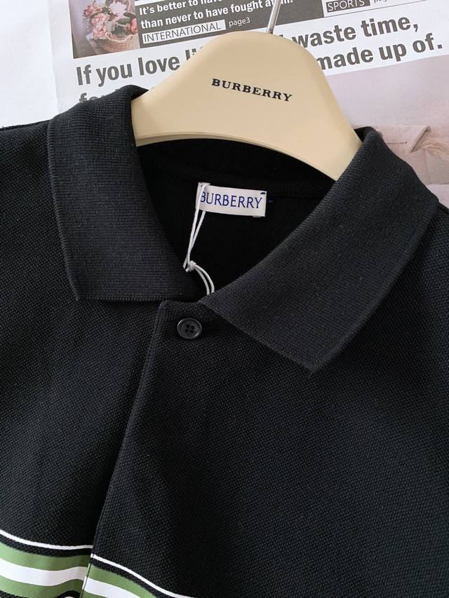 Burberry 2025 Spring/Summer New Arrival: Color-blocked Striped Embroidered Polo Shirt. This piece is crafted from cotton pique mesh fabric. It features an embroidered equestrian knight logo (Ekd) and striped embroidery using a screen printing technique. The buttons are engraved with the classic Burberry lettering. A novel and unique design, fashionable and versatile, this is an essential item for both casual and business occasions. Unisex, available in two colors. Sizes: S (Length 71cm, Chest 102cm, Shoulder 42.5cm, Sleeve 28cm), M (Length 73cm, Chest 106cm, Shoulder 44cm, Sleeve 29cm), L (Length 75cm, Chest 110cm, Shoulder 45.5cm, Sleeve 30cm), XL (Length 77cm, Chest 114cm, Shoulder 47cm, Sleeve 31cm). Sizes: S-XL