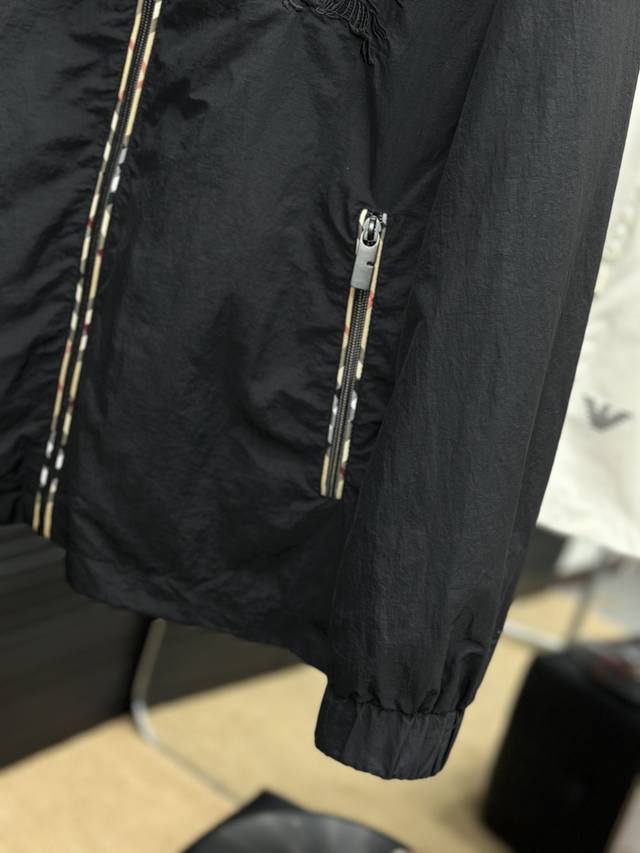 Burberry 2025 Spring/Summer New Eco-friendly Renewable Lightweight Jacket #This jacket is made of 100% polyester fiber. Through meticulous blending, the fabric is smooth and soft to the touch, lightweight, and highly breathable. Practical and functional, a classic jacket combines sophisticated engineering and garment design, making it perfect for business offices and a must-have business jacket for travel. Color: Black Sizes: M-XL
