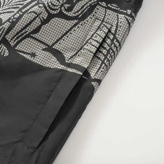 2025Ss Early Spring New Equestrian Rider Logo Nylon Jacket. The fabric is made of high-quality nylon, which is lightweight, durable, windproof, and waterproof, making it ideal for casual jackets. A special waterproof coating is used to enhance its waterproof performance. Cutting and Sewing: The fabric is cut to the required shape and size according to the design drawings. Advanced sewing equipment and techniques are used to sew the fabric together to form the jacket's overall structure. Special attention is paid to details during sewing, such as the zippers, pockets, and cuffs, to ensure durability and aesthetics. The logo pattern is reproduced with high precision. Logo and Printing: The equestrian rider logo (Ekd) and the "B" shaped zipper pull are printed on the jacket using plastisol printing, highlighting the brand's characteristics. Environmentally friendly, washable inks are used for the printing process to ensure the print is long-lasting and vibrant.