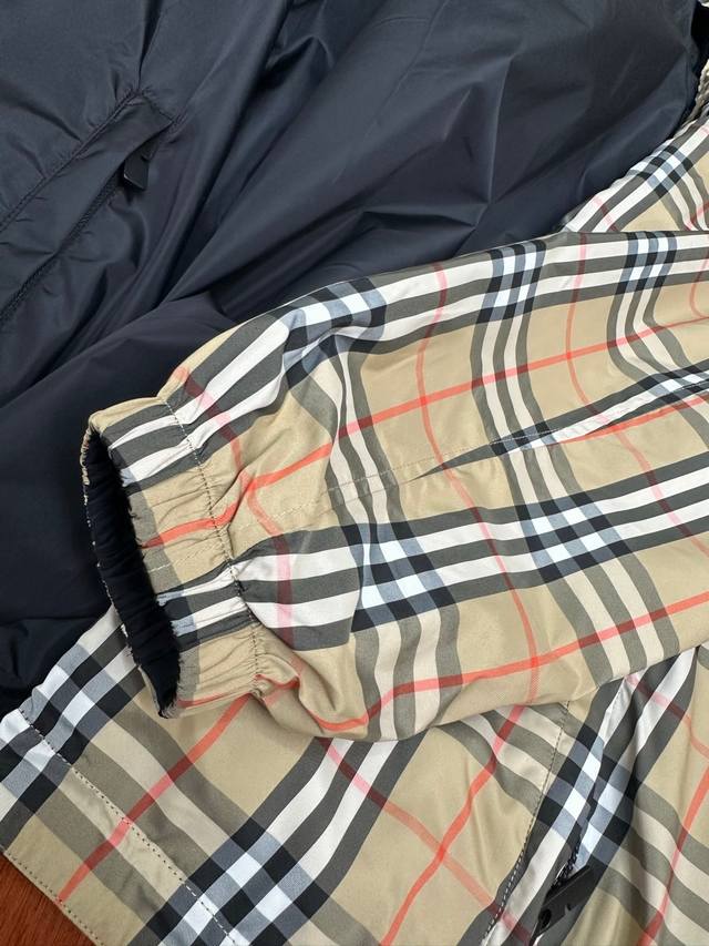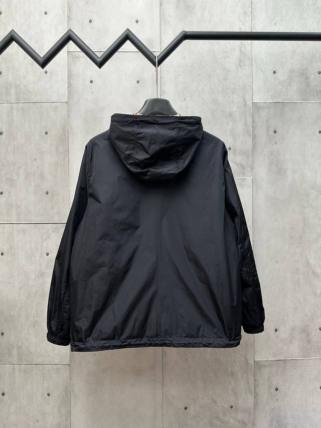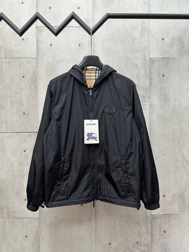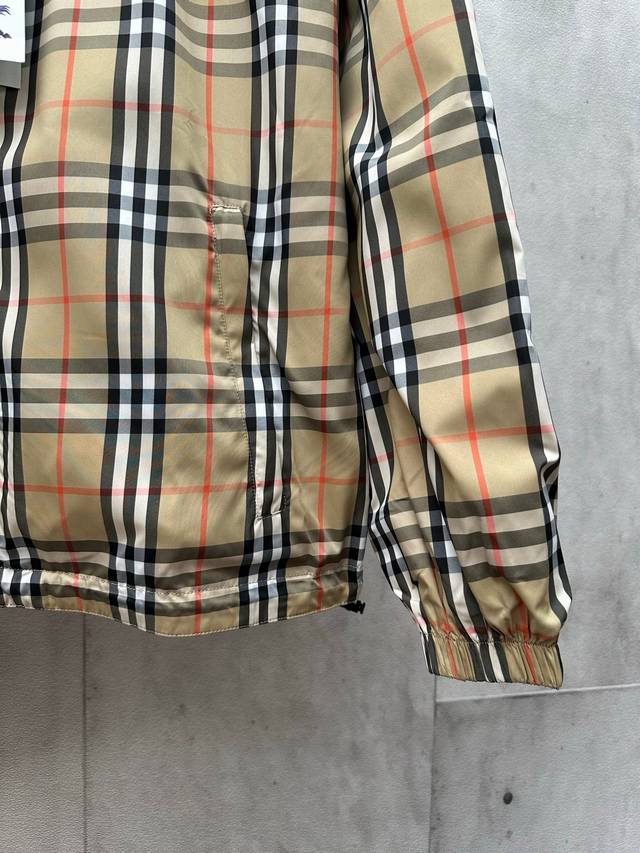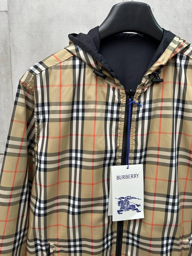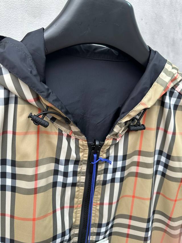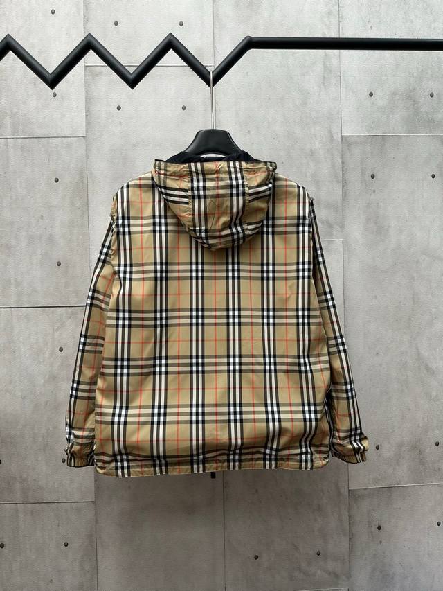 / Burberry 2025Ss New Check Reversible Nylon Hooded Jacket. Made of solid-color ny