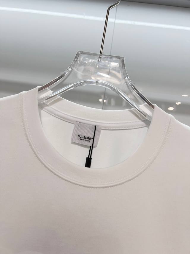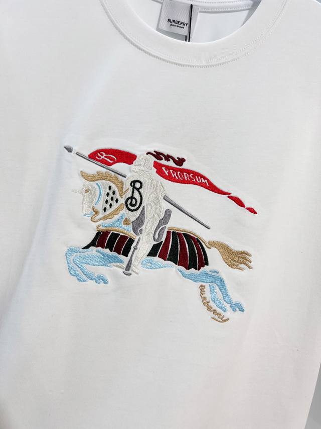 Burberry 2026 New Color Block Embroidered Horse Logo Short-Sleeve T-Shirt (Unisex) Custom 320g 100% Double Yarn Cotton Fabric, Dyed 32-Count Double Ribbed Fabric, Complete with Label, Hangtag, and Main Label . Color: White. Sizes: S, M, L, XL.