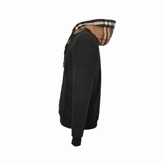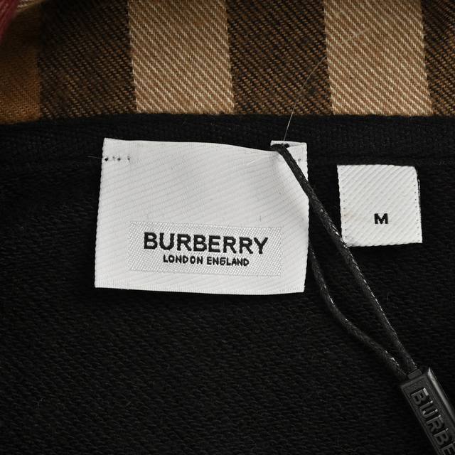 ). Developed 1:1 from the original design, using Burberry's custom terry cloth sweatshirt fabric. The surface has been treated for a smooth feel. The check fabric is 100% coarse cotton with a high yarn count and a thick feel. 1x1 pure cotton stretch ribbing. The ribbing is dyed to match the body color. A classic hoodie design, the symmetrical check pattern on the hood is a key feature. Every hood is identical, with symmetrical stripes on all sides and top and bottom. This requires exceptional cutting skills, time-consuming, labor-intensive, and material-intensive. The flannel material is a special material this year. Features a five-piece drawstring on one side, leather loops, a brass eyelet tag, and a bell-shaped detail, replicating the original design. Adorned with leather trim. Size: S-XL.