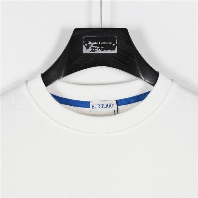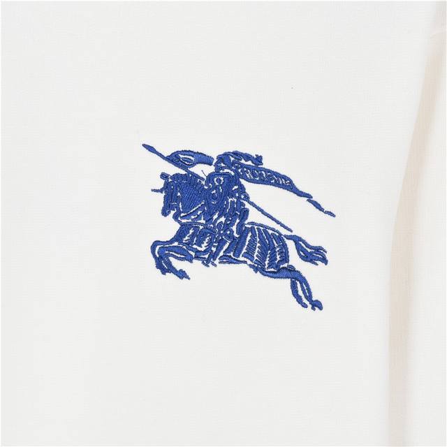Burberry 24Fw Crew Neck Sweatshirt with Large Logo and Equestrian Embroidery on the Chest. Made with imported heavyweight 420g terry cotton fabric, custom-made 32-count ribbed fabric with double washing treatment. Comfortable and skin-friendly, the custom-dyed fabric has a high weave density, excellent drape, and is not easily deformed. The thick weave and tight spinning process add to its appeal. The large blue Equestrian logo on the chest features Barringt embroidery, creating a three-dimensional and full look. A versatile and stylish sweatshirt with a loose fit that flatters all body types. Colors: Black, White. Size: XS-L.
