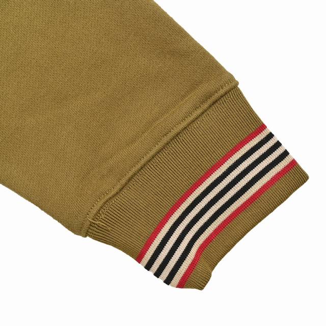 Burberry 24Fw Tb Embroidered Striped Fleece Zip-Up Hooded Jacket. Made with 500g brushed fleece lining, this jacket features a thick, soft, and comfortable brushed fleece fabric. It boasts a classic Tb embroidered logo on the chest and striped woven color-block design on the cuffs and hem. The embroidery is done using a Behringer embroidery machine, resulting in richer colors and more three-dimensional embroidery. It is highly breathable and comfortable, with impeccable details and a delicate, soft feel. The fit is superb! Colors: Black, Dark Green. Size: Xs-L.