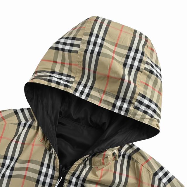 Burberry 25Fw Horse Logo Reversible Jacket (Ddd). Made with custom-woven and dyed khaki check fabric, the check size is identical to the original, unlike ready-made fabrics on the market where the check is 1cm larger and easily mistaken. Front, back, and hood alignment are 100% accurate. The cutting and alteration of this piece involved significant labor and time costs. The entire garment has three layers of fabric (in addition to the inner and outer layers), resulting in substantial fabric consumption! All hardware accessories, including drawstrings, patches, and zippers, are custom-made. It's indistinguishable from boutique items; feel free to compare. Size: S-XL