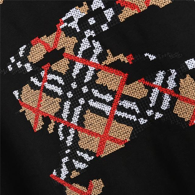Burberry 25Fw Plaid Warhorse Cross-Stitch Embroidered Long-Sleeved T-Shirt. Made