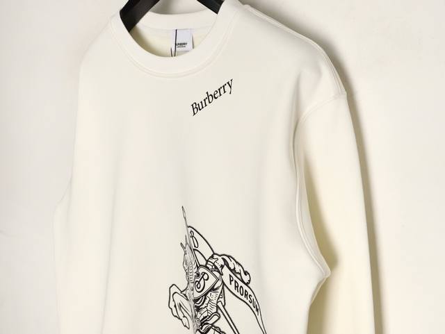 Burberry 25Fw Sketch Horse Crew Neck Sweatshirt (Ddd) 480G Premium Combed Cotton Fabric, Original White Thick Hang Tag with DDD Original Hang Tag, 3D Foamed Print on the Front and Back, Unisex, Oversized Fit (Ddd) Sizes: S-XL (DDD)