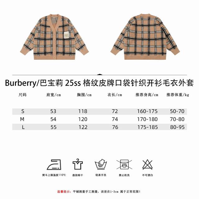 Burberry 25Ss Check Leather Patch Pocket Knit Cardigan Sweater Outerwear DDD Exclusively customized high-quality wool blend yarn knitting Ddd The whole piece is soft and comfortable to the touch, breathable and has super strong warmth DDD Exclusively molded custom leather patch pocket on the chest Ddd Loose silhouette cut is slimming and flattering for all body types Ddd Unisex, easy to wear and stylish DDD Latest official website, all custom accessories, washing labels, hang tags, etc. are complete, truly 1:1 replica! DDD DDD Size: SML DDD
