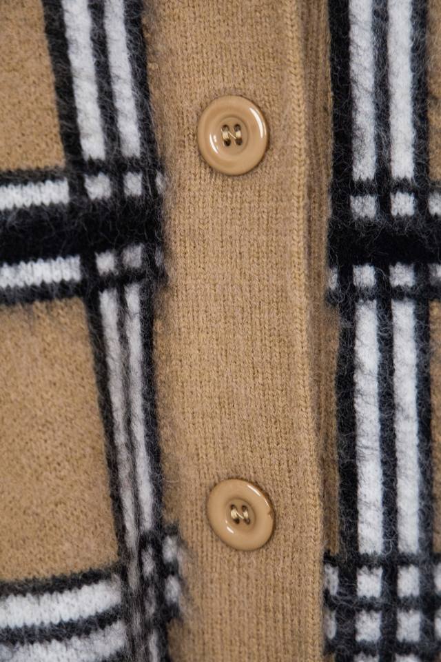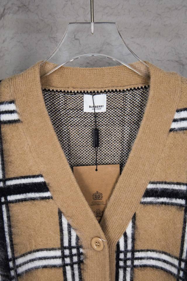 Burberry 25Ss Check Leather Patch Pocket Knit Cardigan Sweater Outerwear Exclusi