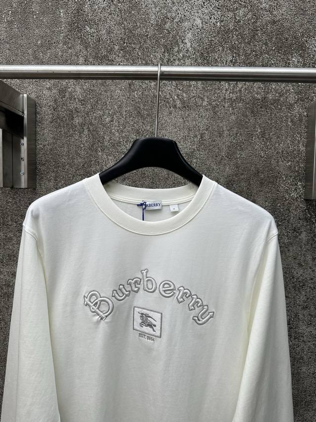Burberry 25Ss Fall New Arrival Equestrian Equestrian Embroidery Gothic Style Cotton Slightly Loose Long-Sleeve T-Shirt. Made with a high-count plain knit fabric, the texture is delicate and soft. Classic elements such as the logo and equestrian embroidery are presented in a gothic retro style. The slightly loose cut gives a relaxed feel. Sizes: S, M, L, XL.