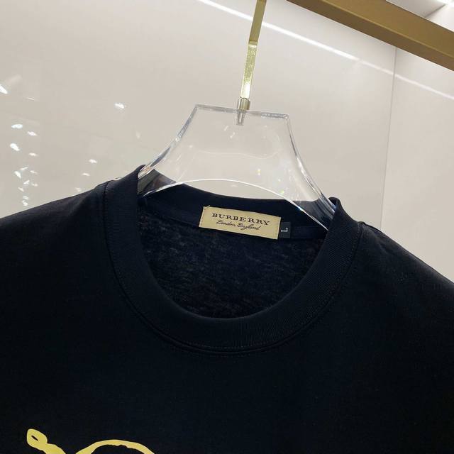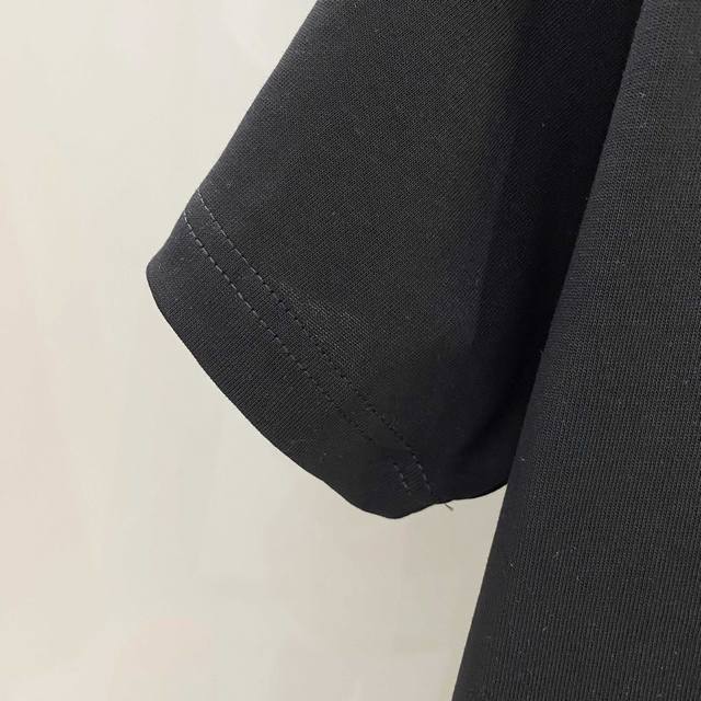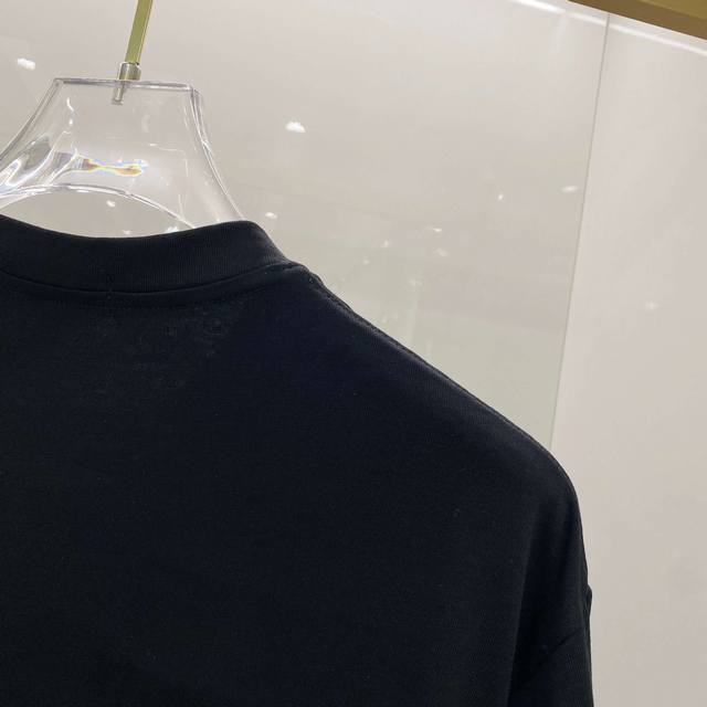 Burberry 25Ss High-Version Crew Neck Short-Sleeve T-Shirt with Printed Logo on Chest Patches. Made from custom 280G double-ply fine cotton plain weave high-density dust-free cotton fabric. The Os fit is loose, relaxed, and versatile, exuding understated luxury and sophistication. Many celebrities and bloggers have tried it on; it's easy for all styles to wear. Unisex, perfect for couples! Sizes 48-56. Model is 173cm tall and weighs 143kg, wearing size 48.