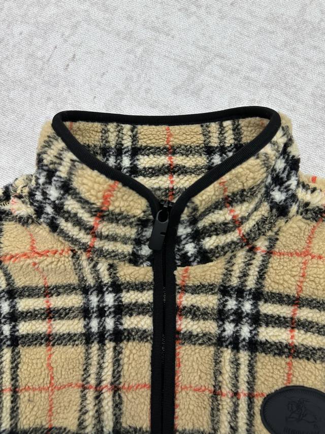 Burberry 25Ss New Check Wool-Cashmere Blend Jacket is crafted from a soft wool-cashmere blend fabric and decorated with a knitted Burberry check pattern. It features a lightweight mesh lining with equestrian stamp appliqu