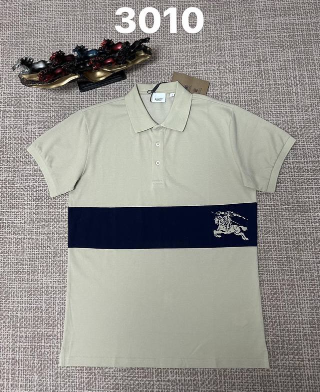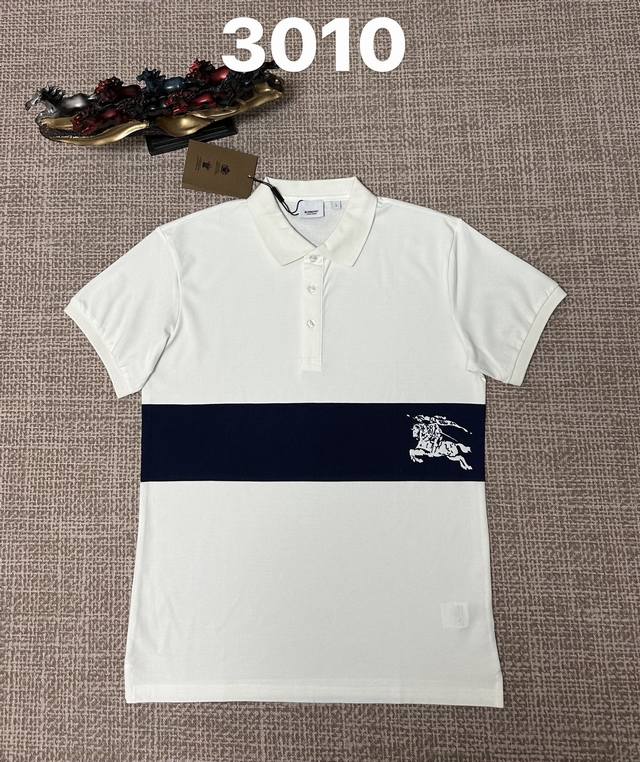 / Burberry 3010 Men's Open-Chest Collar Polo Shirt, Pure Cotton Fabric, Printed F