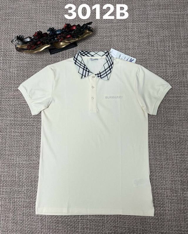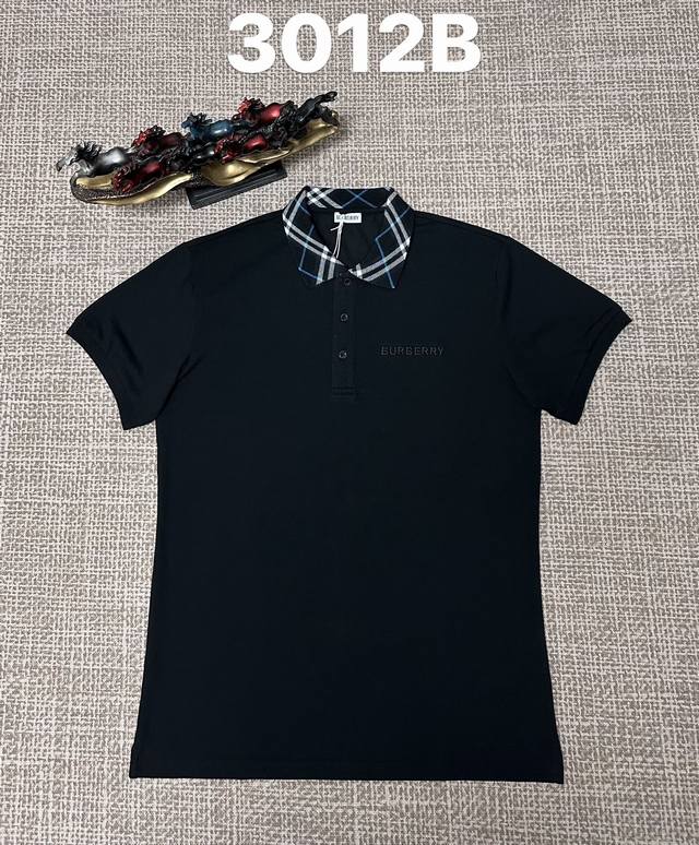 / Burberry 3012 Men's Open-Chest Collar Polo Shirt, Pure Cotton Fabric, Embroider