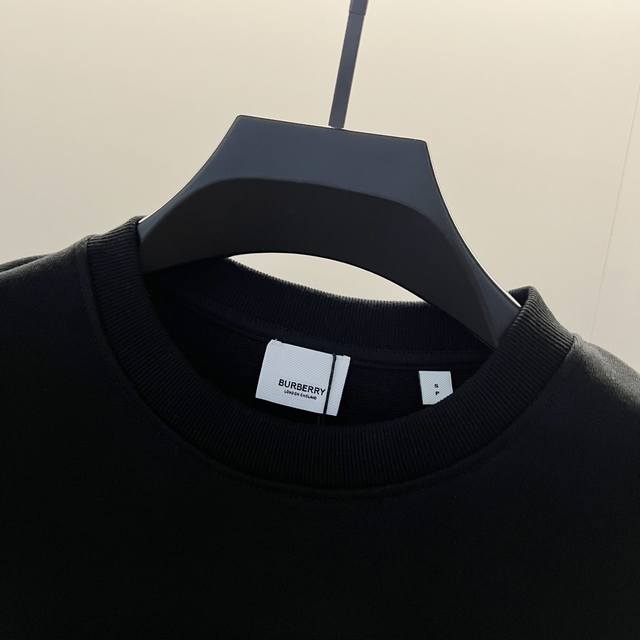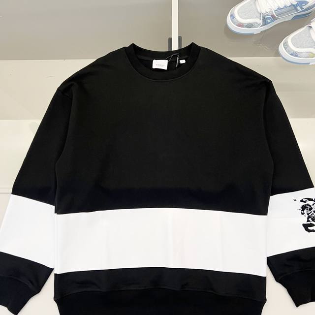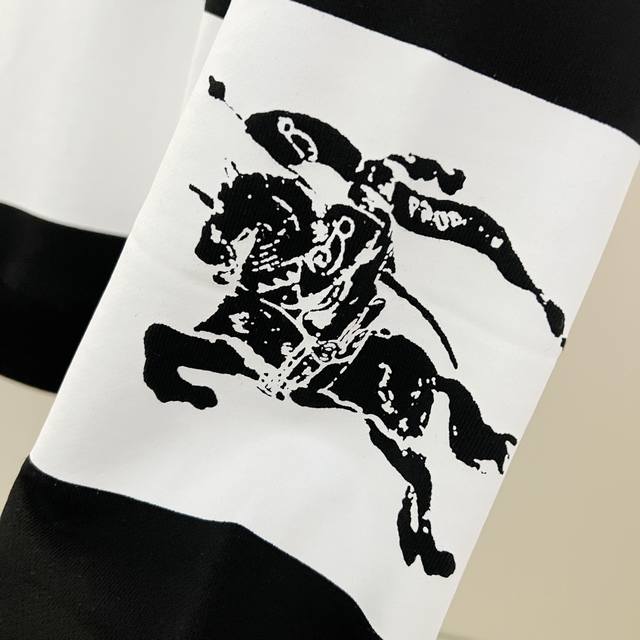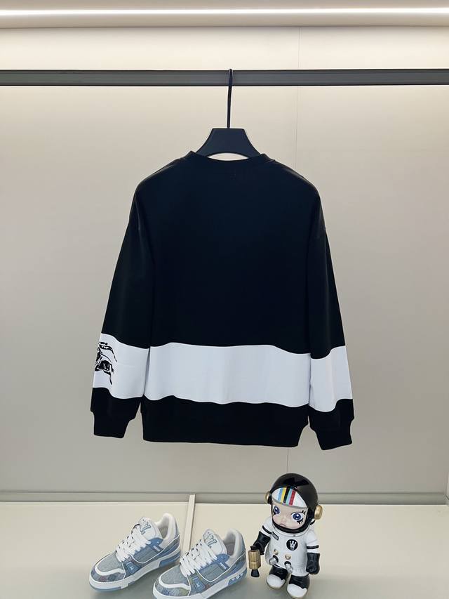 Burberry 420g 100% Cotton Crew Neck Sweatshirt. Features a striped print with a cutout equestrian logo. Officially synchronized high-quality version. Stylish, versatile, and trendy. Made with original fabric. Includes hangtag, neck label, and wash label. Colors: Black, White. Sizes: XS-L.