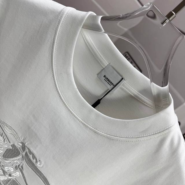 Burberry Autumn/Winter New Crew Neck Short Sleeve T-Shirt with Embroidered Horse Logo on Chest, Unisex, Loose Fit. Colors: Black, White, Green. Sizes: S (90-130 lbs), M (120-150 lbs), L (140-165 lbs), XL (160-180 lbs), XXL (180-210 lbs).
