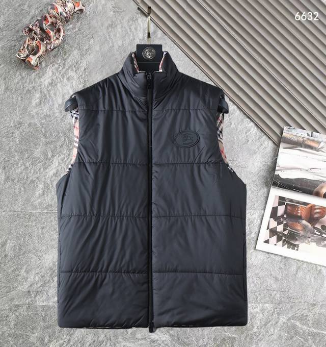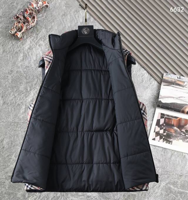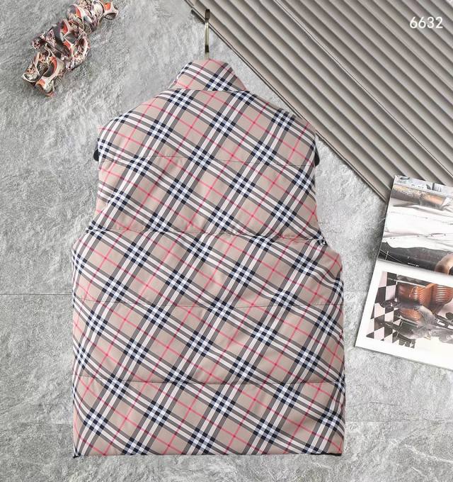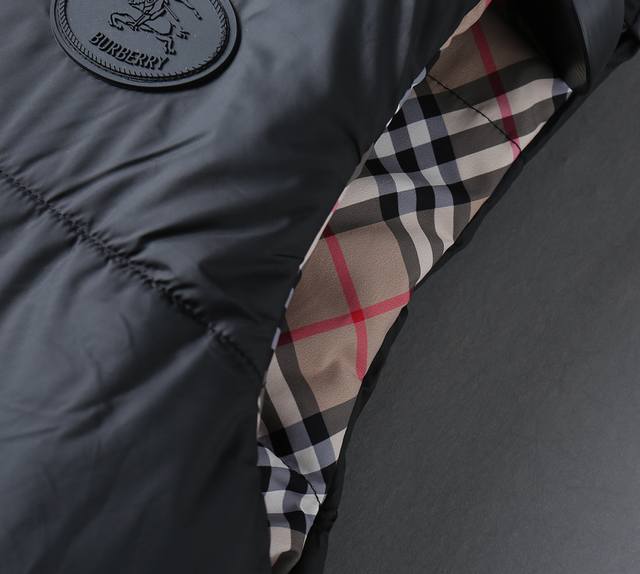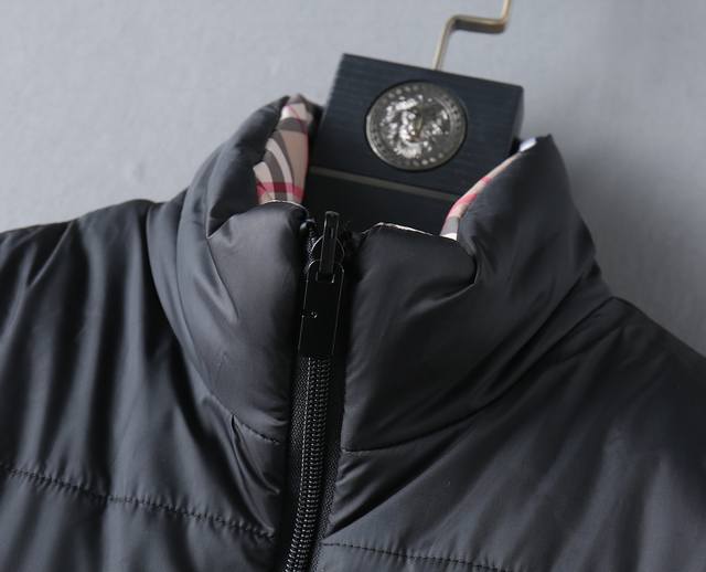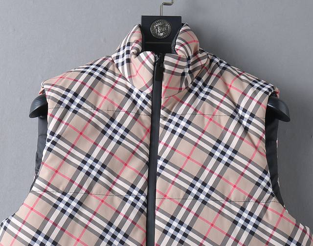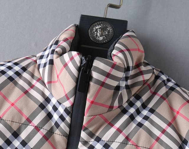 Burberry Bbr 24Fw Check Reversible Down Cotton Thickened Vest DDD This vest features a reversible design, with one side featuring a classic check pattern and the other a solid color design adorned with the brand's equestrian knight logo appliqu