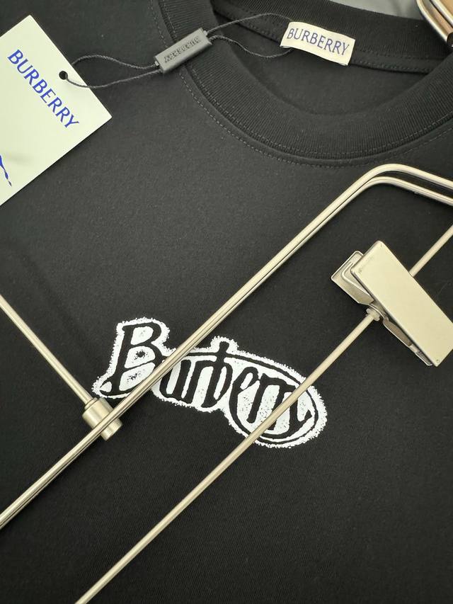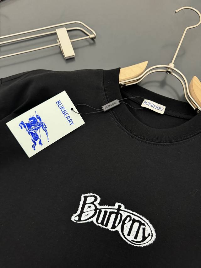 Burberry* Bbr* 320G heavyweight cotton T-shirt, thick, breathable, loose fit, printed with logo design. New spring/summer round neck, fashionable short-sleeved T-shirt. Comfortable and durable. Authentic craftsmanship, a must-have for casual and versatile wear. Colors: Black, White. Sizes: S, M, L, X, L, XXL.