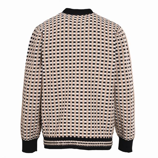 . It is made of polyester, cotton, and wool. The original four-color yarn is custom-dyed. The spacing process is complicated, and an imported machine can only weave one body in 180 minutes. In addition, the hem, placket, and cuffs need to be color-matched, which is a complicated process and time-consuming and labor-intensive to sew. The original hem is made with a horse-drawn distressed process. The natural resin buttons are individually molded and laser-engraved to restore the original.