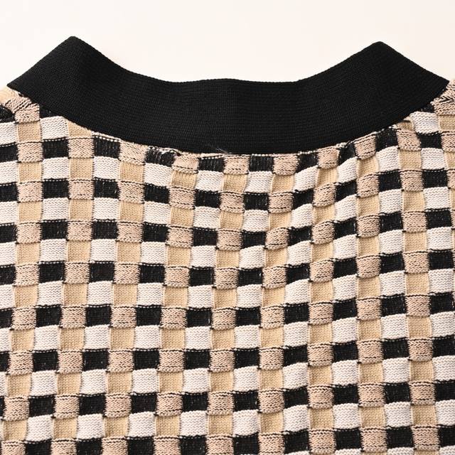 Burberry Bbr black and white plaid V-neck knitted sweater cardigan