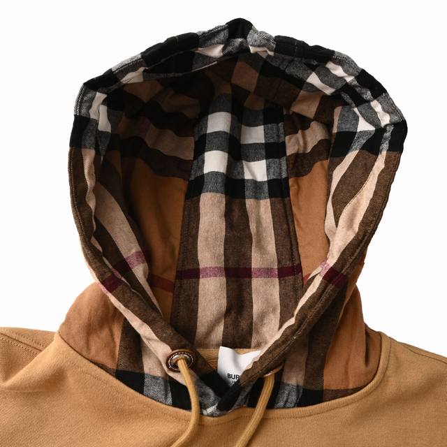 ) - Developed 1:1 from the original design, using Burberry's custom terry cloth hoodie fabric. The surface has been treated for a smooth feel. The check fabric is 100% coarse cotton with a high yarn count and a thick feel. It features 1x1 pure cotton stretch ribbing. The ribbing is dyed to match the body color. This classic hoodie design emphasizes the check pattern on the hood. Every hood is identical, with symmetrical stripes on all sides and top and bottom. This requires exceptional cutting skills, time-consuming, and resource-intensive. The flannel material is a unique material this year. It features a five-piece drawstring on one side, a leather loop, a brass eyelet tag, and a bell-shaped detail, replicating the original design. It is also embellished with leather trim. Size: SL (