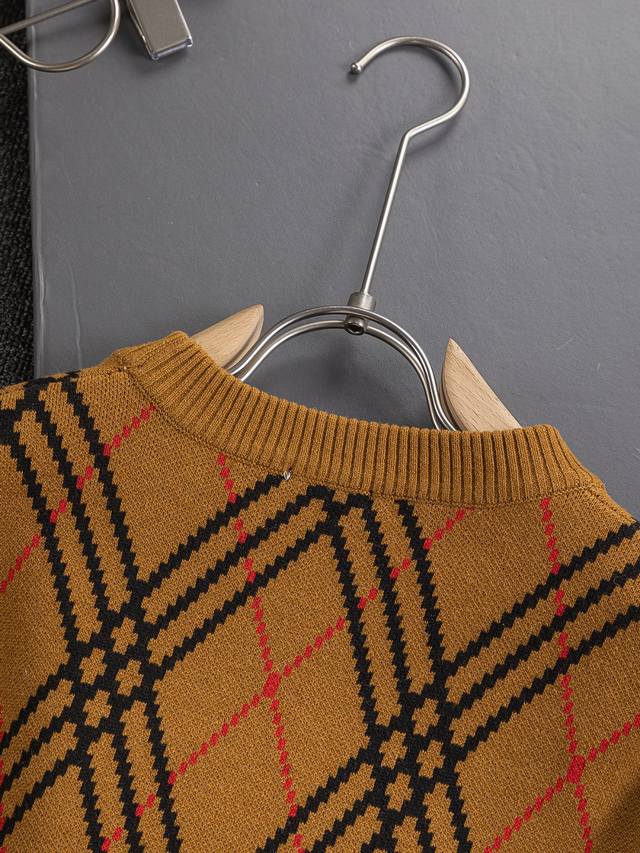 Burberry Bbr War Horse Bbr Slightly Wide Fit S-XL Ddd Bbr 25Ss Autumn/Winter Sweater New Exclusive Limited Edition Latest Boutique Style Round War Horse Letter Check Embroidered Logo Exquisite Craftsmanship 50% Wool Content 35% Cashmere 15% Synthetic Fiber Sweater T-shirt As a leader in the luxury world, Burberry is undoubtedly deserving of its title. The piece we're discussing today first catches the eye with its loose and comfortable khaki red solid color and two fit options. The ribbed crew neck perfectly complements the silhouette, while the Burberry logo is prominently displayed on the chest, along with a unique pin design. The color-blocking design further enhances the texture! The black and white color scheme, the most traditional embellishment method combined with the simplest color contrast, creates a strong and direct contrast, which is often the most concise and clear minimalist approach. A nostalgic classic feel subtly permeates this piece! Made with pure cotton, this Ddd piece offers unparalleled comfort, making it an essential companion for autumn and winter. Its excellent breathability and comfortable fit are simply unmatched. Highly recommended!! Sizes: S-XL, Colors: Khaki, White. Size Chart: S: Shoulder 41cm - Chest 51cm - Length 66cm; M: Shoulder 43cm - Chest 53cm - Length 68cm; L: Shoulder 45cm - Chest 55cm - Length 70cm; XL: Shoulder 47cm - Chest 57cm - Length 72cm.