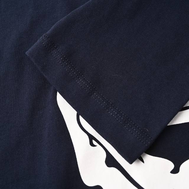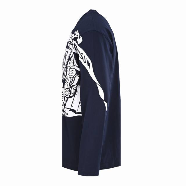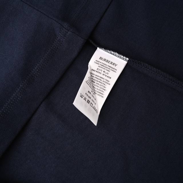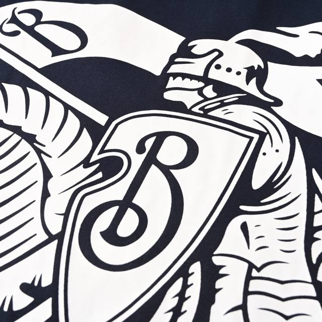 Burberry Bbrcottontop Equestrian Horse Print Long-Sleeve T-Shirt, Navy Blue. Original version purchased for 5600 RMB. Custom-woven and dyed, 235g linen/cotton material. Imported direct-to-garment printing, quality faithfully replicating the original. Features an equestrian knight logo print and a relaxed fit. From Burberry's classic collection, this is a wardrobe essential that embodies the brand's distinctive style. Unisex, relaxed fit. Size: S-XL.