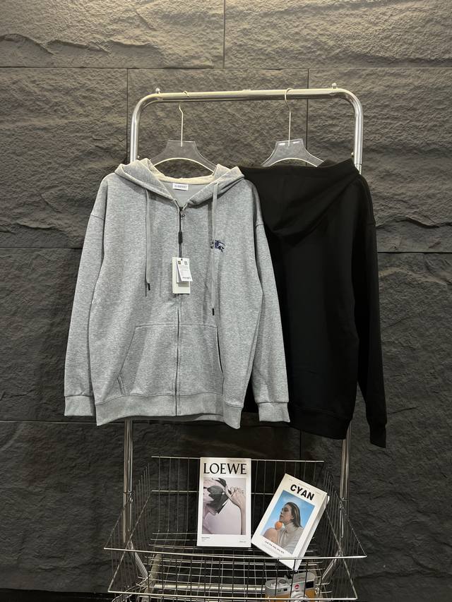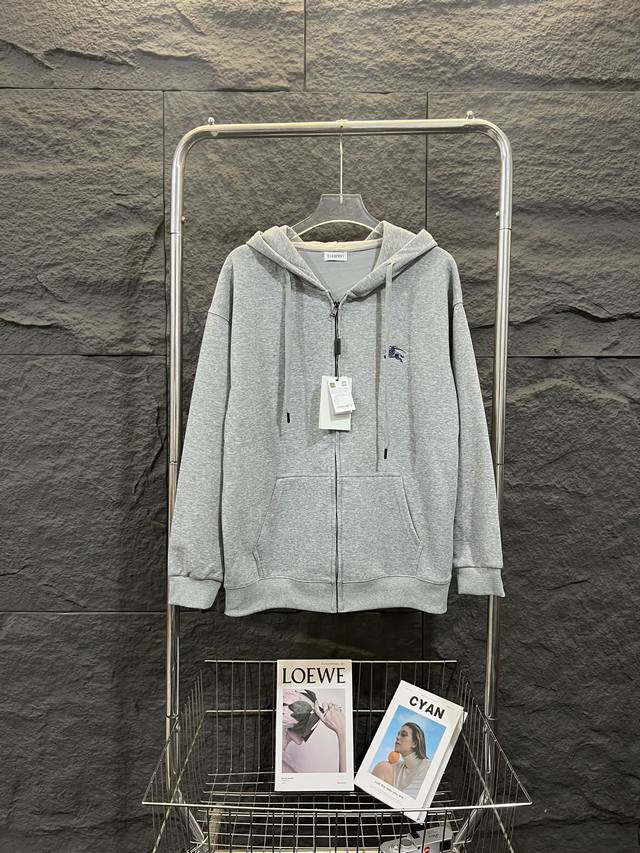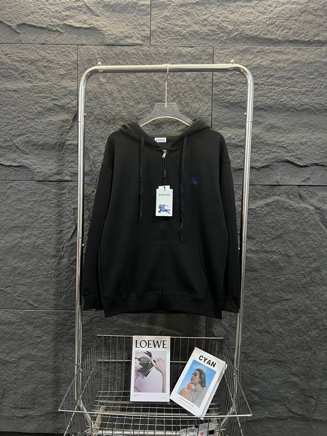Burberry Blue Warhorse Hooded Cardigan Sweatshirt, Unisex Terry Sweatshirt Jacket