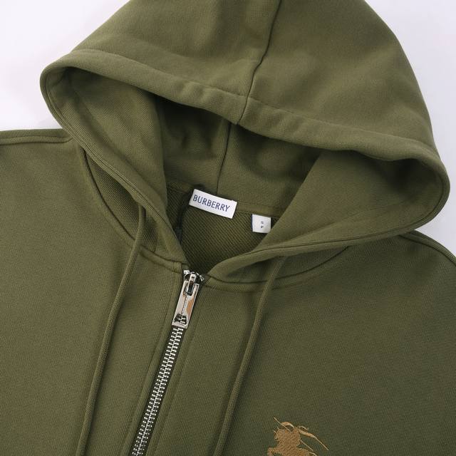 Burberry* Burberry embroidered wheat, rice, and warhorse hooded zip-up cardigan.