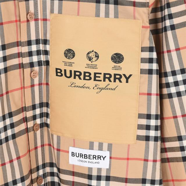 Burberry Burberry label patch plaid long-sleeved shirt