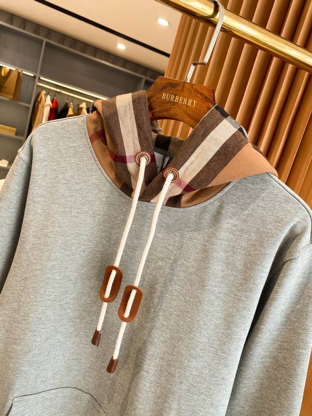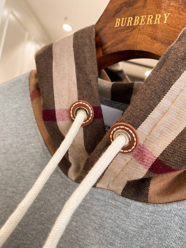 fearlessly tackles any challenge in terms of materials, detail reproduction, and craftsmanship, aiming to present you with an exceptional product. This classic oversized hoodie is crafted from a fleece cotton blend fabric, paired with a contrasting flannel check hood and leather details at the drawstring. It exudes a strong sense of fashion and high-street casual style! Its high recognizability perfectly aligns with the latest Burberry collection, allowing you to experience the latest Burberry style! The material and craftsmanship are also highlights. Made of pure cotton, its comfort is simply irresistible, with a delicate and soft touch, perfectly accommodating various body types! The check hood is made from flannel fabric, with the check pattern perfectly symmetrical!