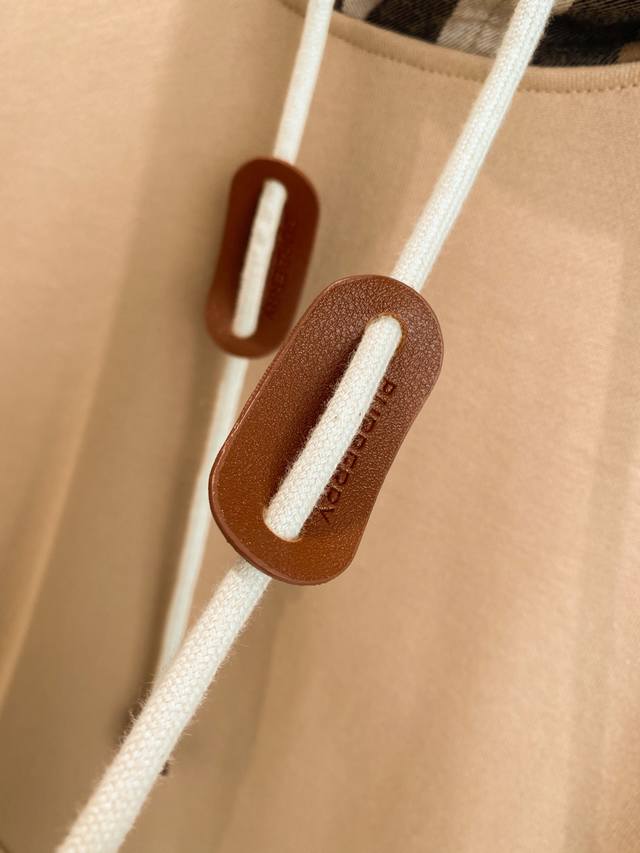 fearlessly tackles any challenge in terms of materials, detail reproduction, and craftsmanship, striving to present you with an exceptional product. This classic oversized hoodie is crafted from a fleece cotton blend fabric, paired with a contrasting flannel check hood and leather details at the drawstring. It exudes a strong sense of fashion and high-street casual style! Its high recognizability perfectly aligns with the latest Burberry collection, allowing you to experience the latest Burberry style! The material and craftsmanship are also highlights. Made of pure cotton, its comfort is simply irresistible, with a delicate and soft touch, perfectly accommodating various body types! The check hood is made from flannel fabric, with the check pattern perfectly symmetrical!