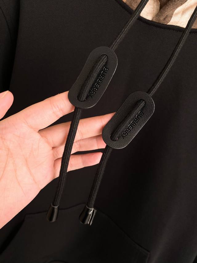 fearlessly tackles any challenge in terms of materials, detail reproduction, and craftsmanship, striving to present you with an exceptional product. This classic oversized hoodie is crafted from a fleece cotton blend fabric, paired with a contrasting flannel check hood and leather details at the drawstring. It exudes a strong sense of fashion and high-street casual style! Its high recognizability perfectly aligns with the latest Burberry collection, allowing you to experience the latest Burberry style! The material and craftsmanship are also highlights. Made of pure cotton, its comfort is simply irresistible, with a delicate and soft touch, perfectly accommodating various body types! The check hood is made from flannel fabric, with the check pattern perfectly symmetrical!